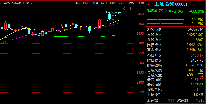 今日,A股震荡调整,大盘蓝筹股韧性较强,上证50、沪深300均微幅飘红,科技成长股略有回调,创业板指、科创50、北证50均等逾1%。约三分之二的个股飘绿炒股开户,市场成交进一步滑落至1.4万亿元,连续第5日缩量。